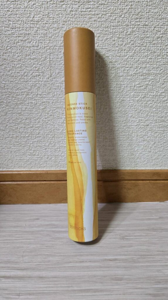 筒を開けて匂いを嗅いでみるとかなり甘めな金木犀の香りがします。