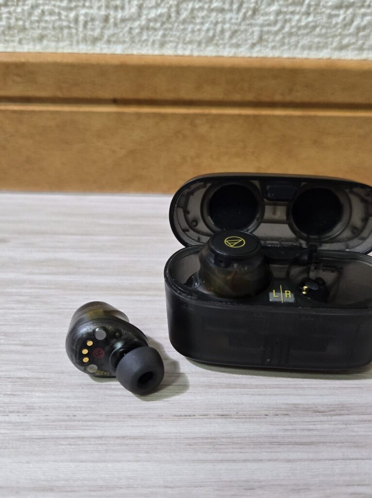 イヤホンって電車に乗る前につけたり、歩き始めるときにつけて目的地に到着したり、室内に入ったら外す。というようにつけたり外したりをかなりするものだと思っています。(筆者は)